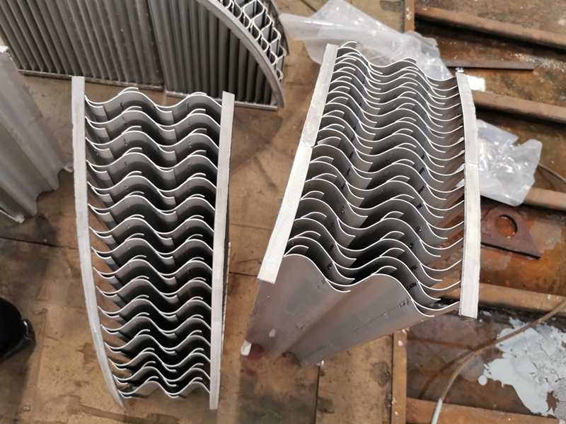 本公司折流板分离器可广泛应用于经各种冷却器、洗涤器、蒸发器、筛板塔、填料塔、喷嘴雾化等设备之后的气-液或气-固分离,有多种板片(S型、梯形、人字型板片)供各种工况选择。